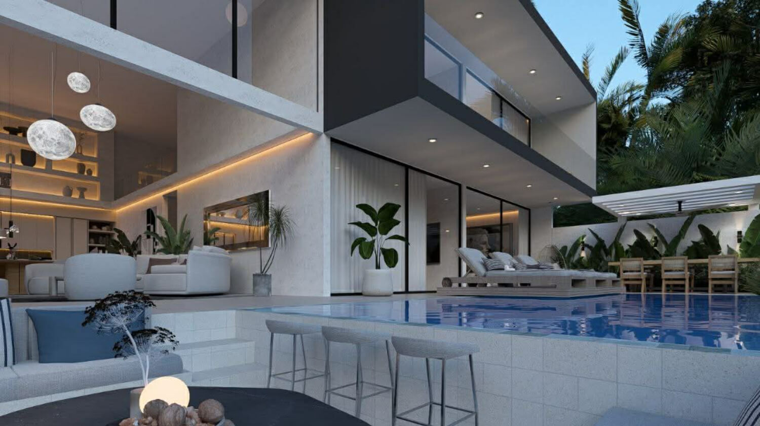 The villa’s central living space is a spacious lounge and dining room, which connects harmoniously to the outdoor area with a private pool and the tropical garden. The modern, minimalist design and high technical standards represent timeless value, making The Grand Villa not just a lifestyle choice, but also a sound, value-retaining long-term investment.